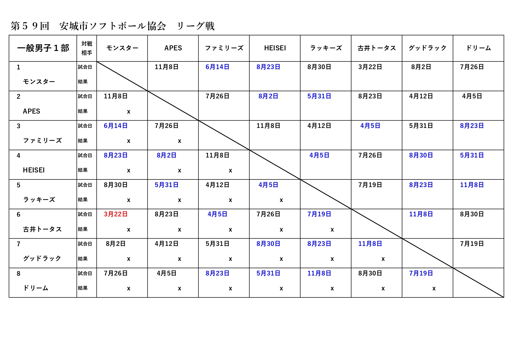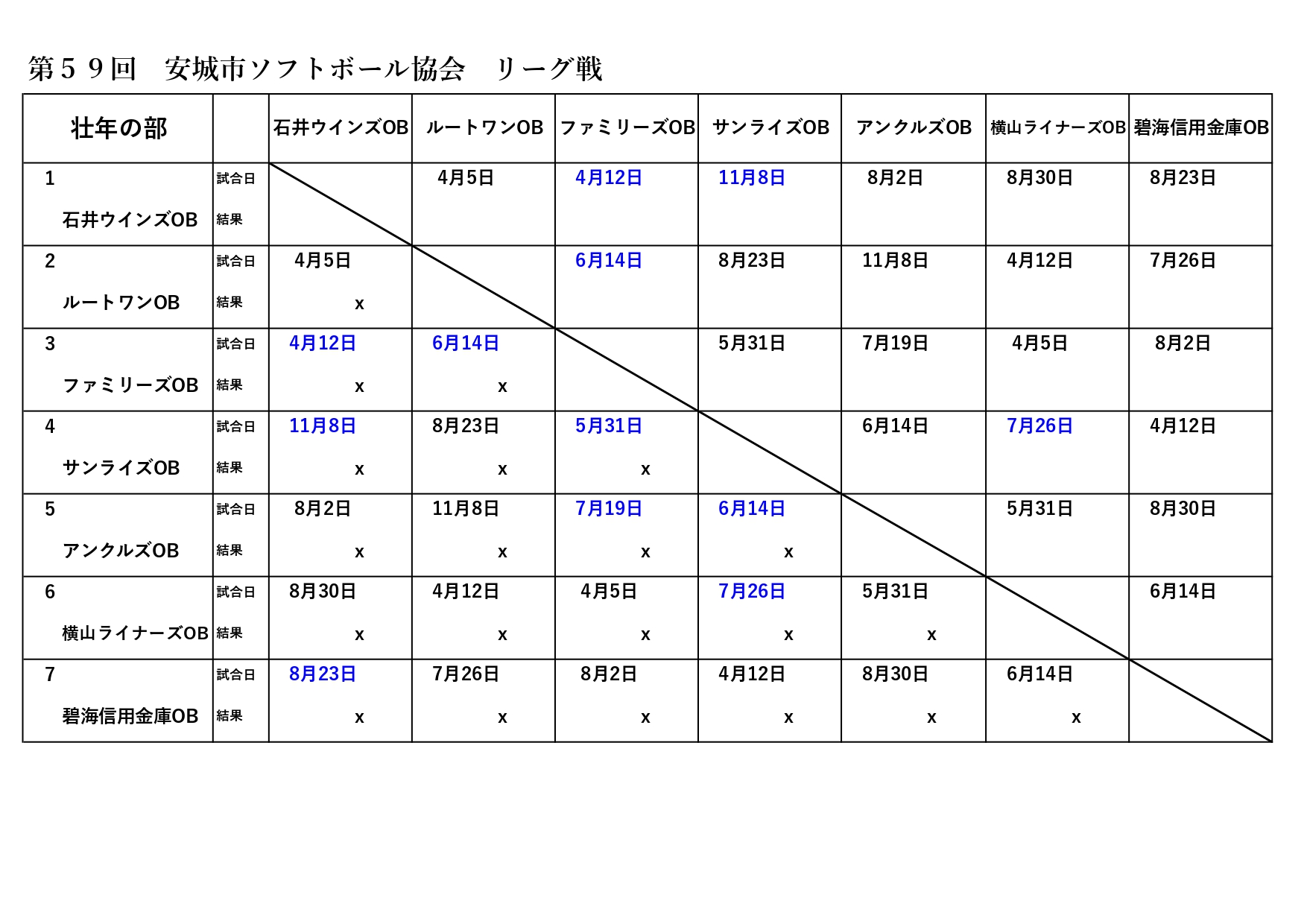 | 3/16 | 石井ウインズOBの試合と3/22の試合日程を修正 | 1部、2部、OB |