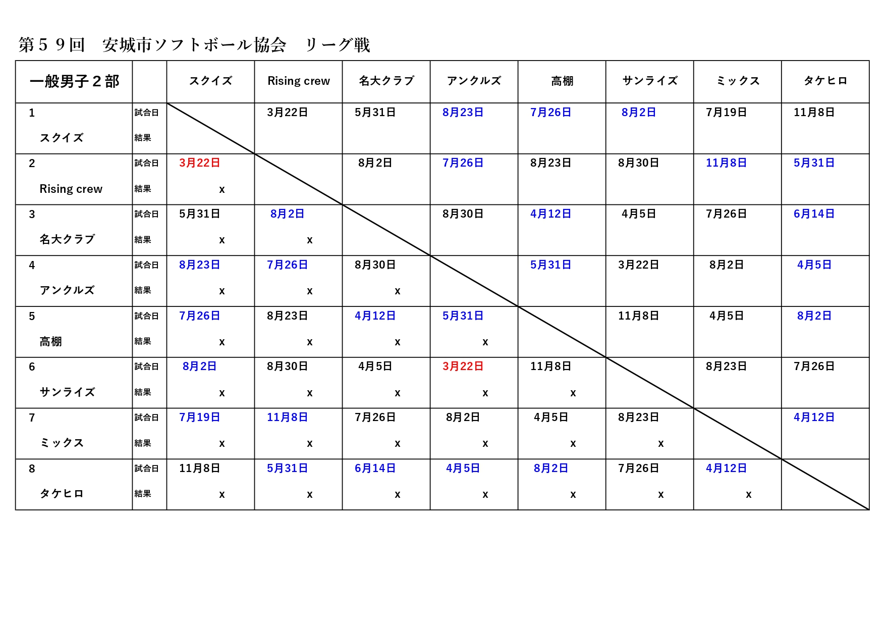 | 3/14 | 名大ク vs 高棚戦を4/12に変更 | 2部 |