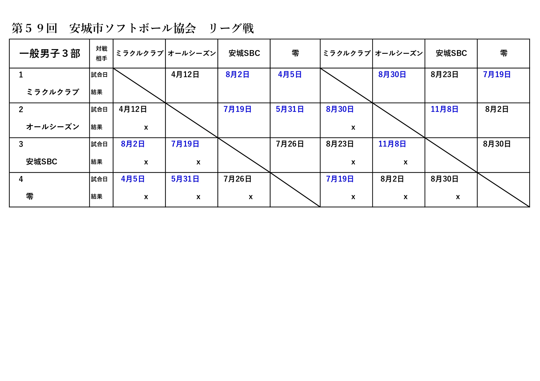 今後の天候や西三河大会、県大会および全国大会の状況により組み合わせを入れ替える可能性がございます。