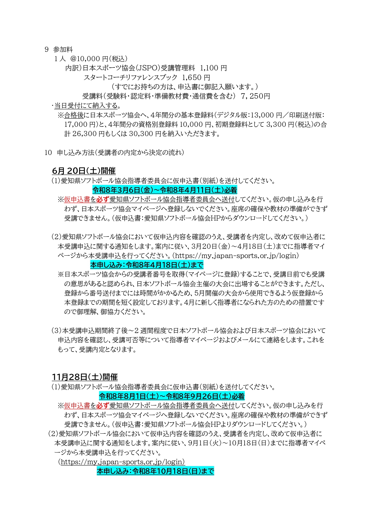 【お知らせ】令和8年度公認ソフトボールスタートコーチ養成講習会【愛知県】開催要項