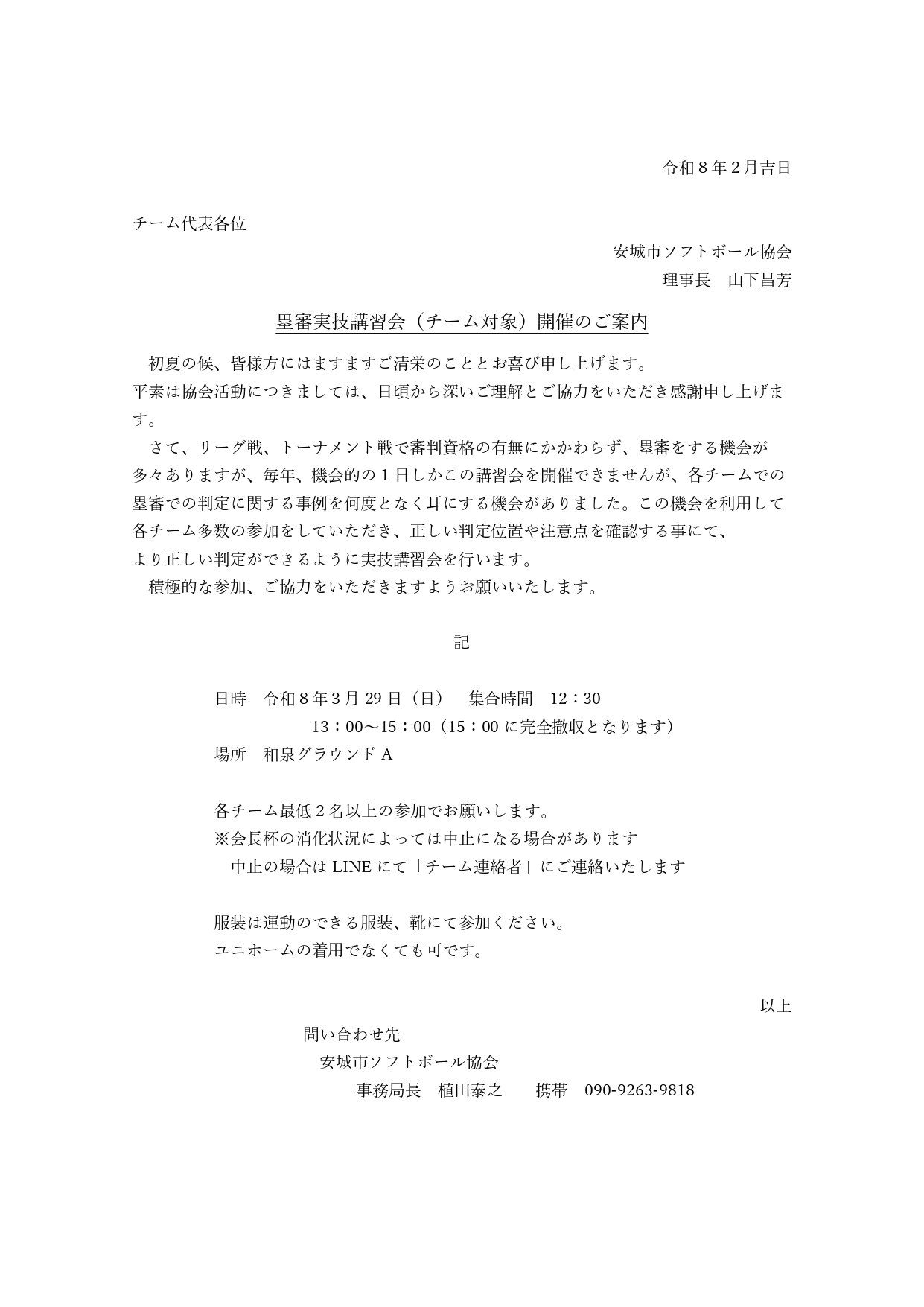 チーム審判実技講習会の案内2026