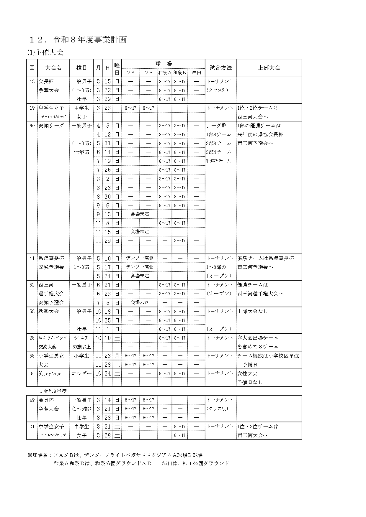 令和8年度ソフトボール協会事業計画